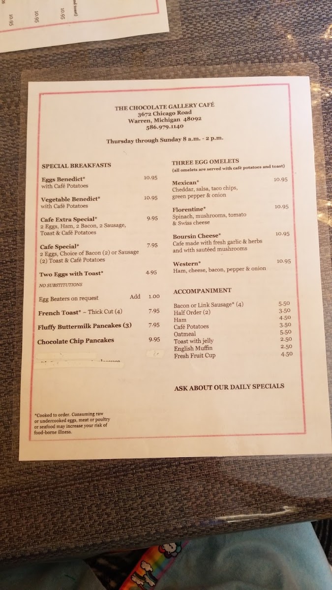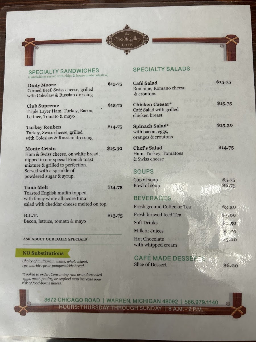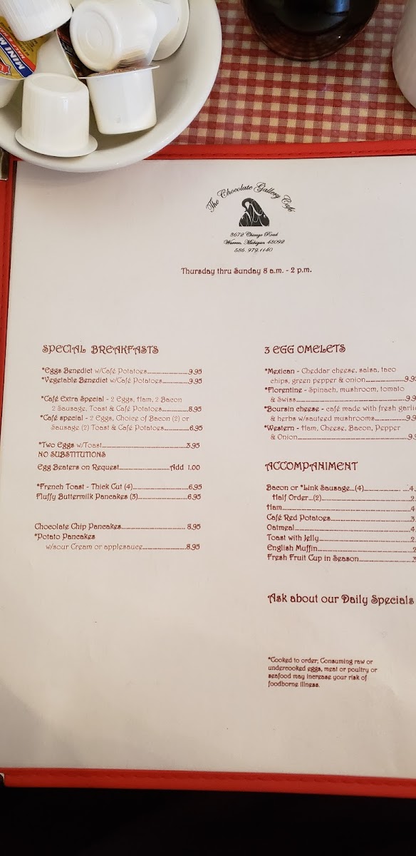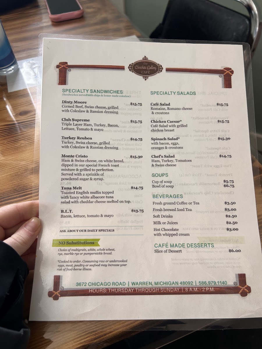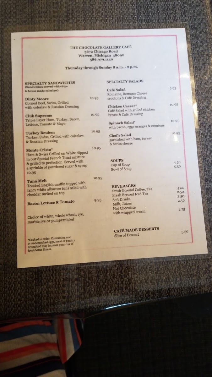 The Chocolate Gallery Cafe Menu